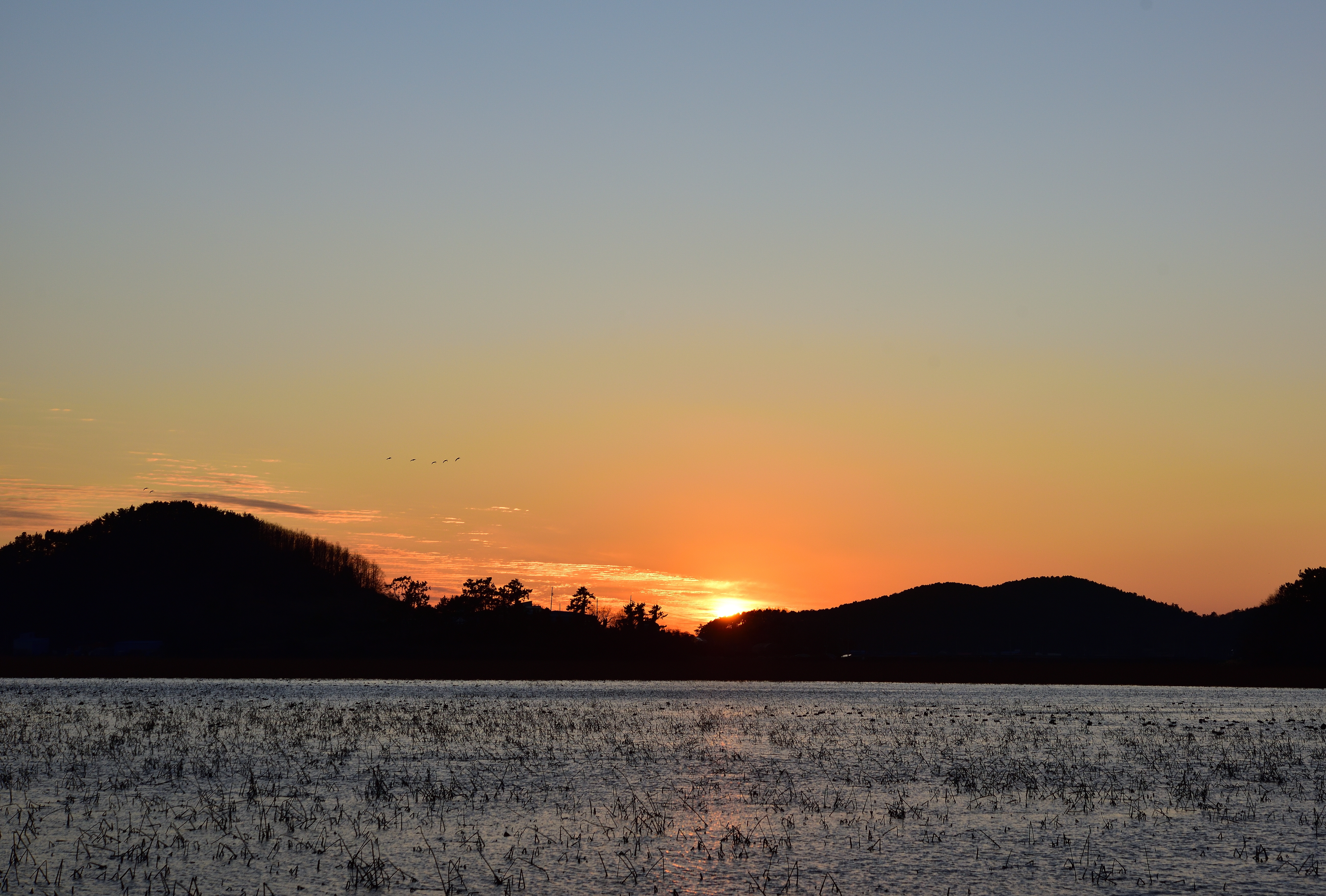~ 석양의 태양과 가창오리 ..